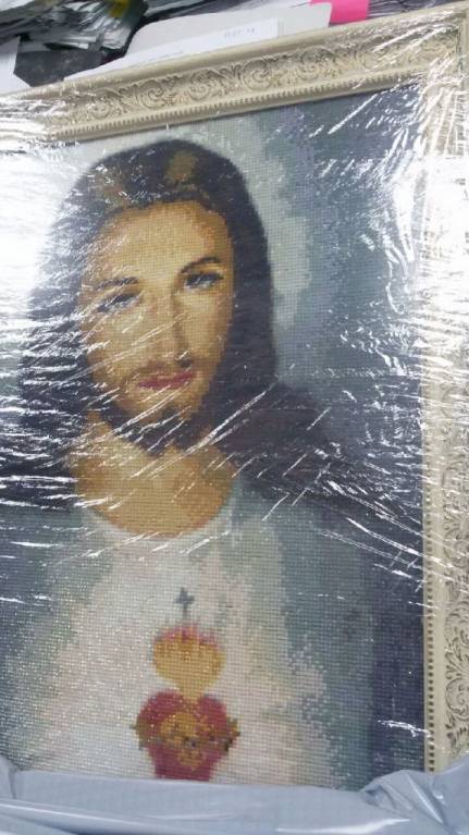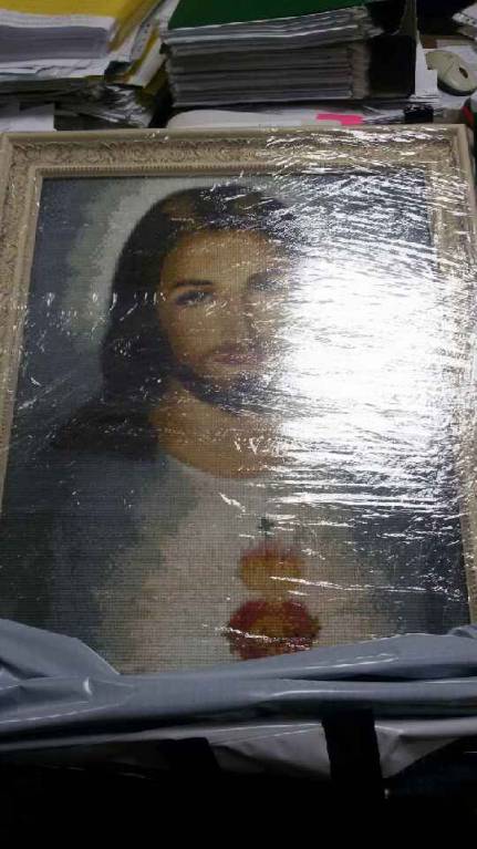 Пока донесла в свернутом виде до багетной мастерской, около 10 стразинок отвалились. Мастер сказала, что я у них не первая такая и они все обратно приделают.