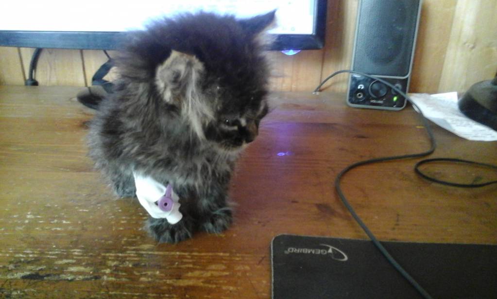 Через два дня малышу стало плохо. Он не стоял на лапках, у него была нарушена координация движений, он даже не мог держать головку, был полный отказ от пищи. Поскакали к вету. В котенка влили 10 кубиков глюкозы и сказали греть. На лапку поставили катетер. Теперь мы ездили в клинику два раза в день на уколы.