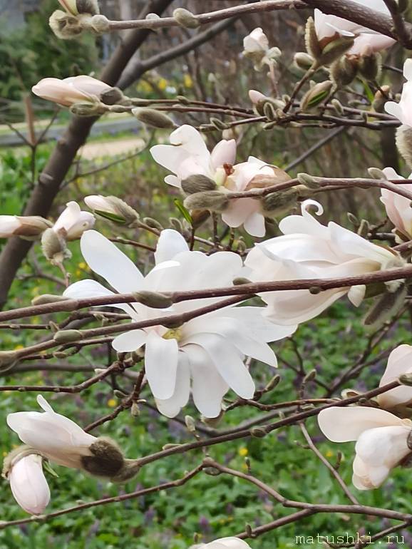 1) Магнолия звездчатая. Я такое растение увиделав моем регионе впервые. Не знаю цветет ли оно где-то кроме ботанического сада.