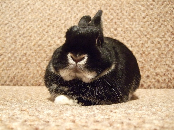 А еще он умеет рычать. Когда его дразнишь, например огурчиком. Кролик сердится и издает звуки, очень похожие на рычание. Еще он умеет барабанить. Дашь ему пластмассовую крышку от торта, она кролику не нравится и тогда он начинает лапками бить по этой крышке. Очень забавно. Любит вместе с нами смотреть телевизор на спинке дивана.