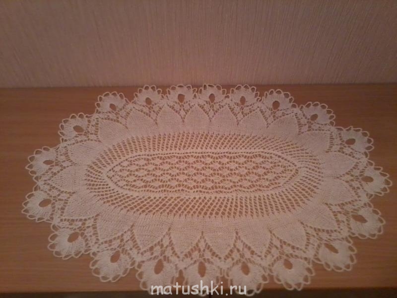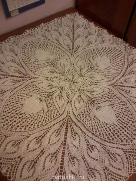 А вот изделие на основе круглой скатерти. Сейчас такое изделие вяжу дочери.