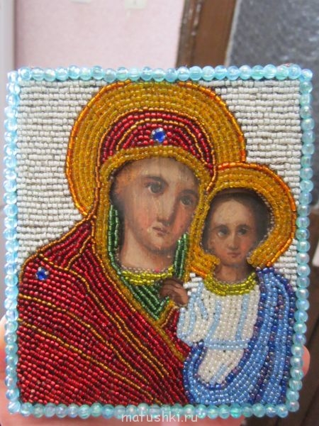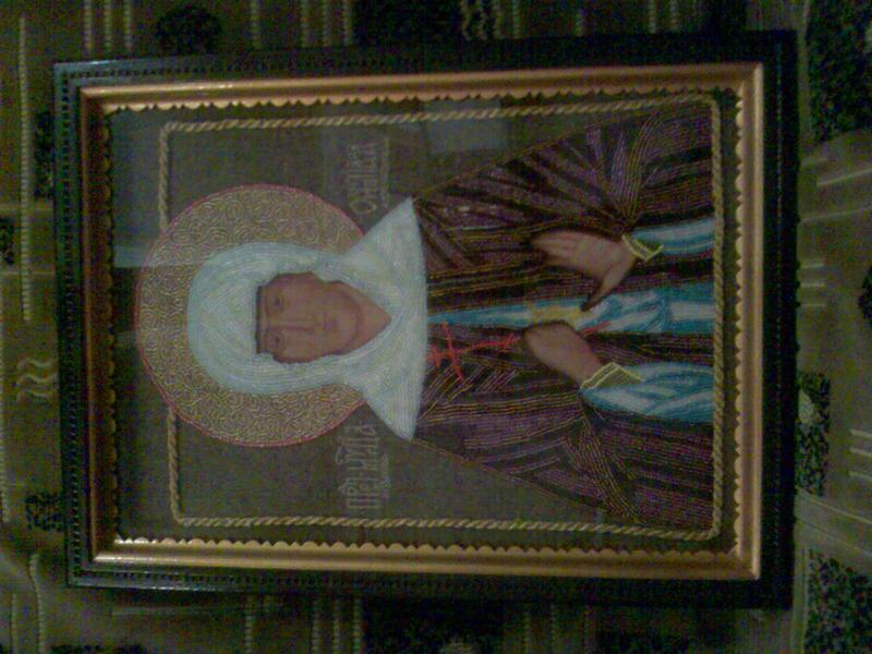 Если интересно, вот вышитая риза на икону мученицы Олимпиады: (бисер)