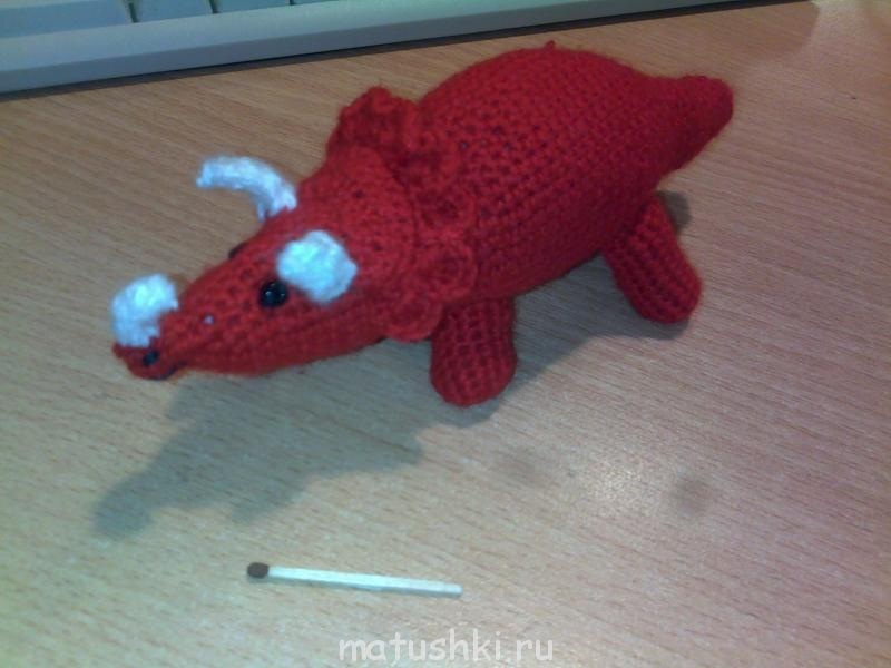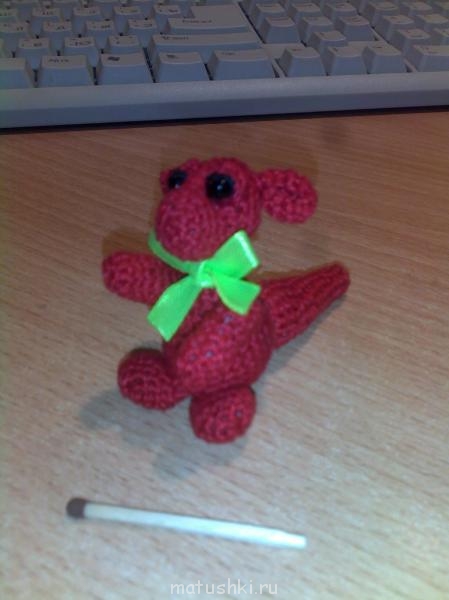 Вяжется весь этот зверинец крючком....из чего вязать - дело индивидуальное. Мне нравится из ириса - дешево, красиво, и маленькие получаются....и форму хорошо держит. А набиваю синтепоном (с зимних скуфей рулон остался, туда его, туда =)) Вяжем столбиками без накида. Еще надо освоить кольцо амиигуруми - чтобы не получалось дырочек, т.к. вяжутся игрушки по кругу. В интернете все объяснено хорошо. Кстати, динозавр - авторская схема (моя)