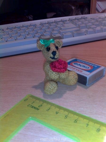 я связала только одну игрушку - мишку.. очень хотела еще голубя с сатилины.. но мне отказали в регистрации